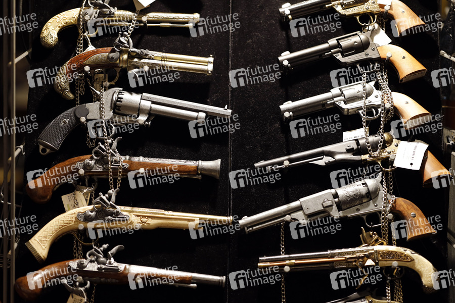Merchandise, Spielzeug, Spielzeugrevolver, Revolver, Spielzeugpistolen, Pistole, Pistolen, Spielzeugwaffe, Spielzeugwaffen, LARP, LARP-Waffen, Muskete, Schießpulver, Patronen, Duellrevolver, Wilder Westen, Cowboy, Musketier, Schießen, Kostüm, Fantasy, Mystery, Convention, Fantreffen, Konvent, Kongress, Entertainment, Unterhaltung, Kultur, Film, Kino, TV, 4. Magic Con, Verwechslungsgefahr, Waffenrecht, Waffenschein, Anscheinswaffen, Symbolbild, Symbolfoto