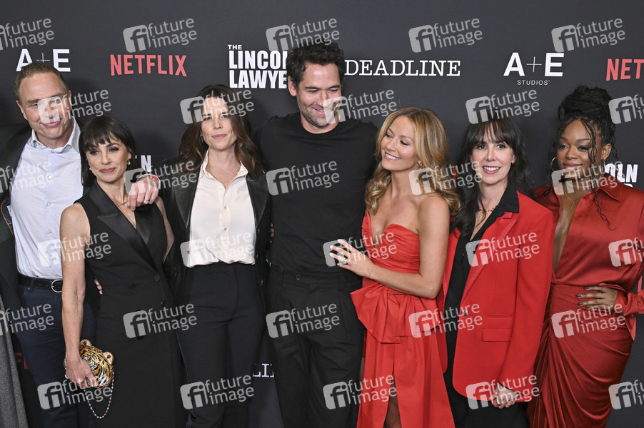 Ted Humphrey, Constance Zimmer, Neve Campbell, Manuel Garcia-Rulfo, Becki Newton, Darilyn Rodriguez und Jazz Raycole bei der Premiere der 4. Staffel der Netflix-Serie 'The Lincoln Lawyer' auf der PMC Rooftop Terrace . West Hollywood, 28.01.2026
