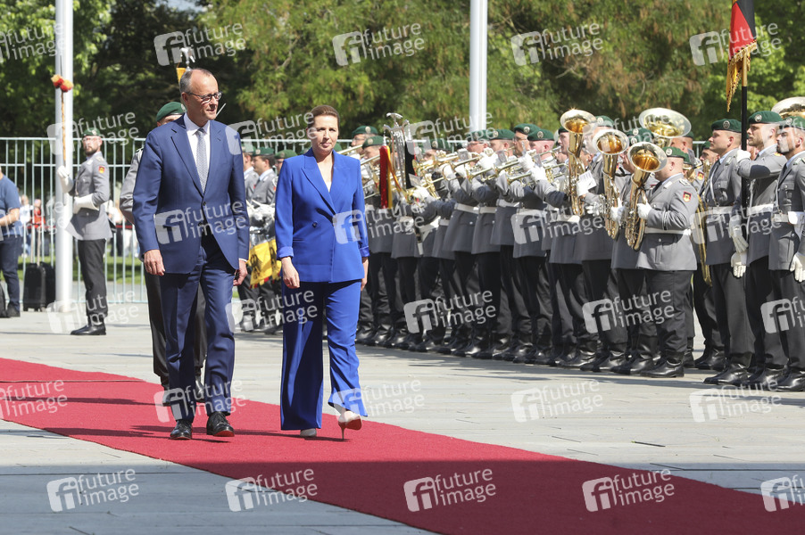 Friedrich Merz und Mette Frederiksen beim Empfang der dänischen Ministerpräsidentin mit militärischen Ehren zu einem gemeinsamen Gespräch mit anschließendem Pressestatement im Bundeskanzleramt. Berlin, 11.06.2025