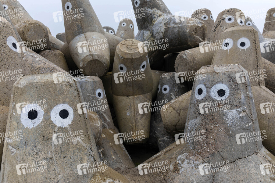 Reise, Urlaub, Sightseeing, Kultur, Sehenswürdigkeit, Tourismus, sechs Tonnen schwere Betonklötze, Küste, Schutz, Schutzfunktion, Sandverlust, Betonklötze, Tetrapodenkunst