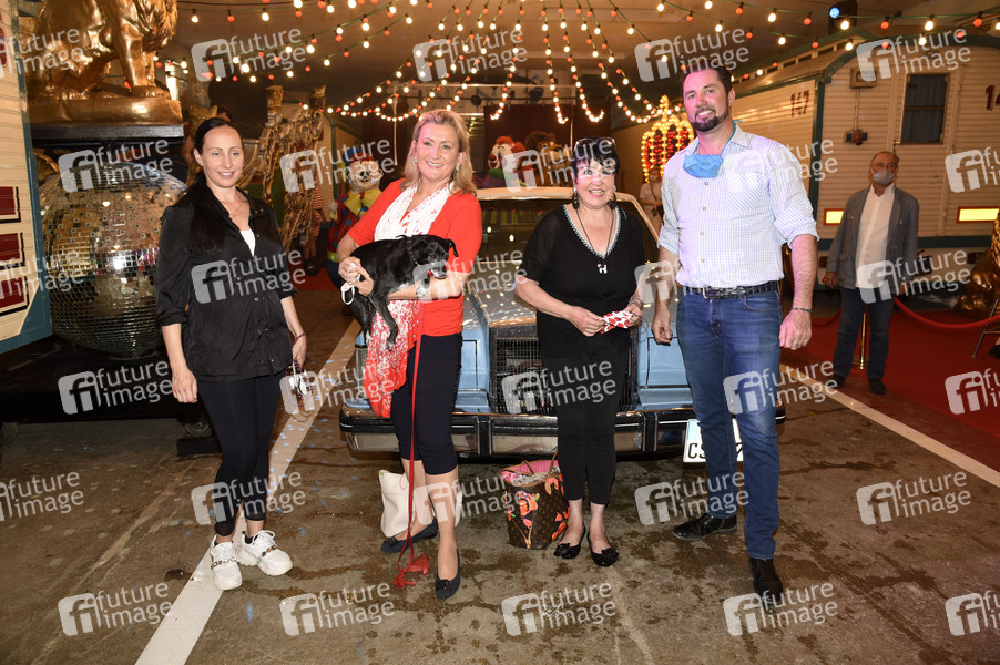 Jana Mandana Lacey-Krone, Karin Engelhard, Uschi Ackermann und Martin Lacey jr. bei der Presse-Premiere 'Clown-Car-Wash' im Circus Krone Bau. München 20.08.2020