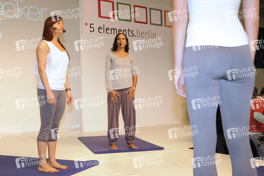Barbara Becker präsentiert Pilates Übungen auf der Modemesse '5 Elements' in Berlin