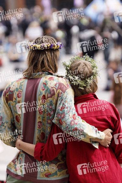 Blumenkränze, Hippie, Hippies, Corona-Demo, Corona-Demos, Corona-Protest, Corona-Proteste, Demo, Demonstration, Demonstranten, Protest, Kundgebung, Gegendemo, Corona-Demo, Corona, Sars-CoV-2, Covid-19, Coronavirus, Coronaviren, Corona-Virus, Coronakrise, Corona-Krise, Corona-Pandemie, Coronamaßnahmen, Abstandhalten, Abstandsregel, Ausnahmesituation, Kontaktverbot, Maskenpflicht, Mindestabstand, Proteste, Grundrechte, Einschränkungen, Corona-Maßnahmen, Corona-Maßnahme, Versammlungsrecht, Versammlungsverbot, Kontaktverbot
