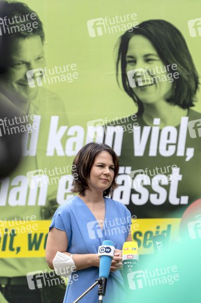 Annalena Baerbock beim Wahlkampfauftakt von Bündnis 90/Die Grünen Brandenburg und der Enthüllung eines Großflächenplakats auf dem Goetheplatz in Wilhelmshorst. Michendorf, 26.07.2021