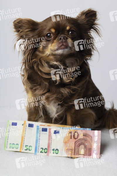 Chihuahua, Tier, Hund, Dog, Tierliebe, kleinste Hunderasse der Welt, Haustier, Rassehund, Hundehalter, Hundebesitzer, Banknoten, Geldscheine, Euro, EUR, €, Bargeld, Steuer, Gemeindesteuer, Aufwandsteuer, Jahressteuer, Steuermarke, Symbolbild, Themenbild