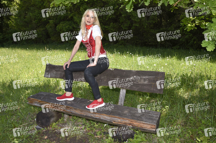 Isabella Hübner beim Fototermin mit Angelika Zwerenz Tracht. Deining, 17.05.2020