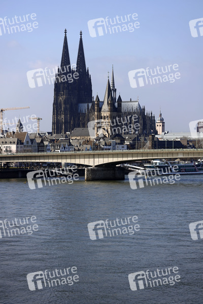 Der Kölner Dom gesehen vom rechtsrheinischen Deutzer Ufer aus. Das größte Deutsche Bistum wird von einer Vertrauenskrise mit vielen Kirchenaustritten erschüttert, nachdem Kardinal Reiner Maria Woelki, Erzbischof von Köln, ein Gutachten zum Missbrauch im Erzbistum nicht publizieren wollte und stattdessen ein neues Gutachten in Auftrag gab. (Themenbild, Symbolbild) Köln, 28.02.2021
