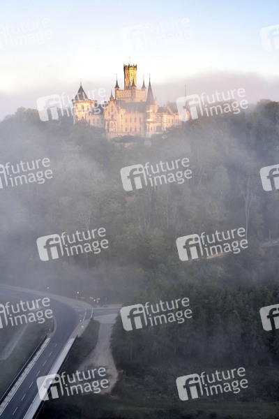 Schloss Marienburg auf dem Marienberg im Morgennebel. (Bildfreigabe durch Pressesprecherin Annette Langhorst vom Schloss Marienburg) Nordstemmen, 09.10.2021