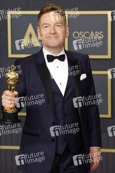 Kenneth Branagh mit dem Oscar für das beste Originaldrehbuch zu 'Belfast' im Press Room der Oscar Verleihung 2022 / 94th Annual Academy Awards im Hollywood & Highland Center. Los Angeles, 27.03.2022