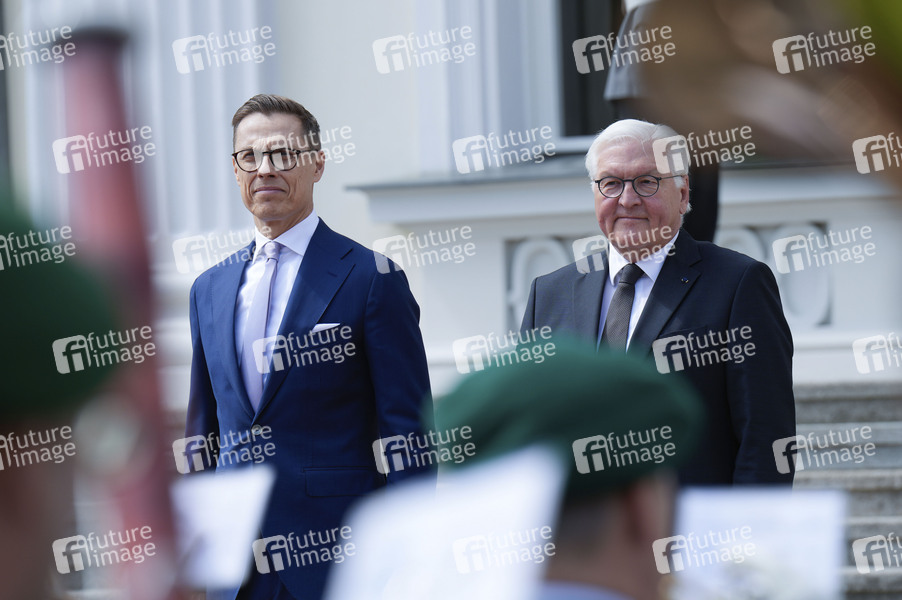 Alexander Stubb und Frank-Walter Steinmeier beim Empfang des Präsidenten der Republik Finnland mit militärischen Ehren im Schloss Bellevue. Berlin, 08.05.2024