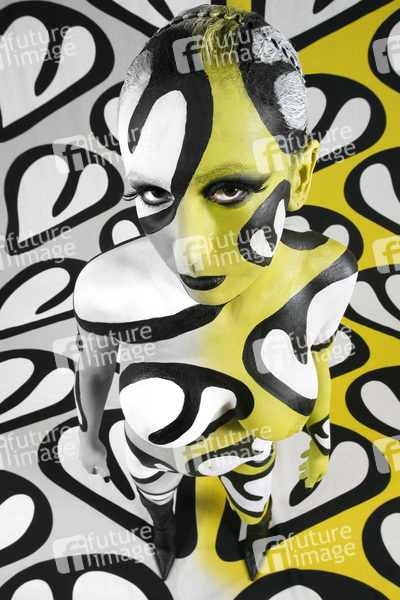 Bodypainting, Stoffdesign Anna Efverlund, Erotik, Frau, nackt, drinnen, weiblich, Muster, Chamäleon, erotic, woman, nude, indoor, female, chameleon