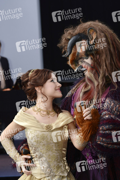 Kitti Jenes (Belle) und Sandor Barkoczi (Biest) bei der Präsentation des Disney Musicals 'Die Schöne und das Biest' im Opernhaus. Hannover, 28.05.2014