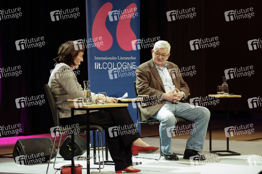 Sonia Seymour Mikich und Joschka Fischer bei der lit.Cologne 2025 Veranstaltung 'Die Kriege der Gegenwart - Über den Beginn einer neuen Weltordnung' im WDR Funkhaus. Köln, 25.03.2025