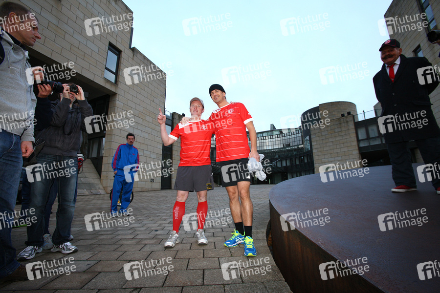 'Wetten dass...?''-Moderator Markus Lanz löst seine verlorene Wette mit einem Lauf von Düsseldorf nach Köln ein