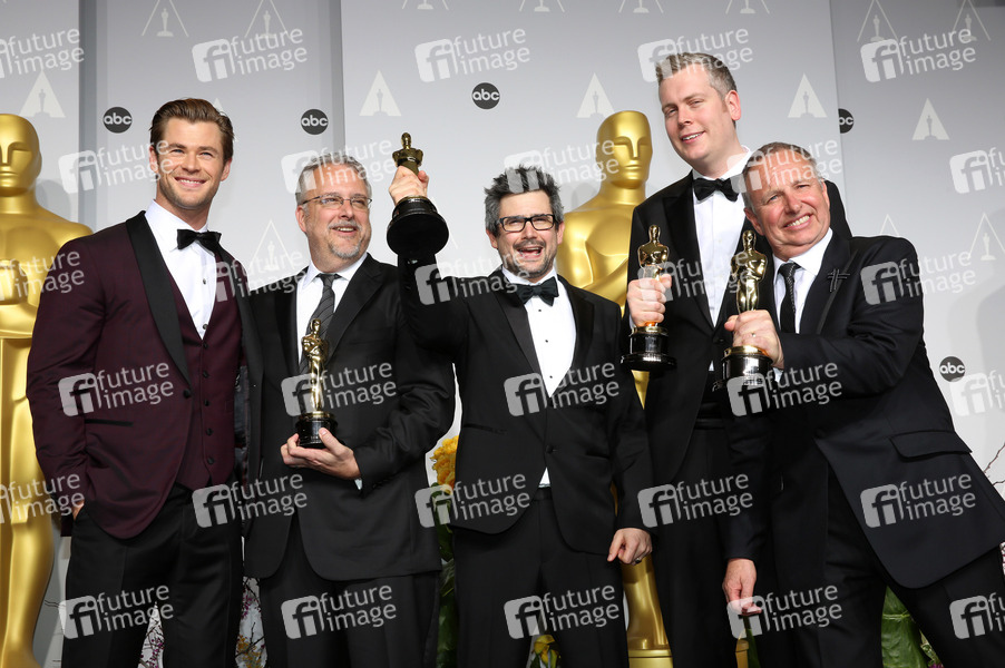 Chris Hemsworth mit Skip Lievsay, Niv Adiri, Christopher Benstead und Chris Munro mit Oscars für den besten Ton in 'Gravity' bei der Oscar Verleihung 2014 / 86th Academy Awards Preisverleihung im Dolby Theatre, Hollywood. Los Angeles, 02.03.2014