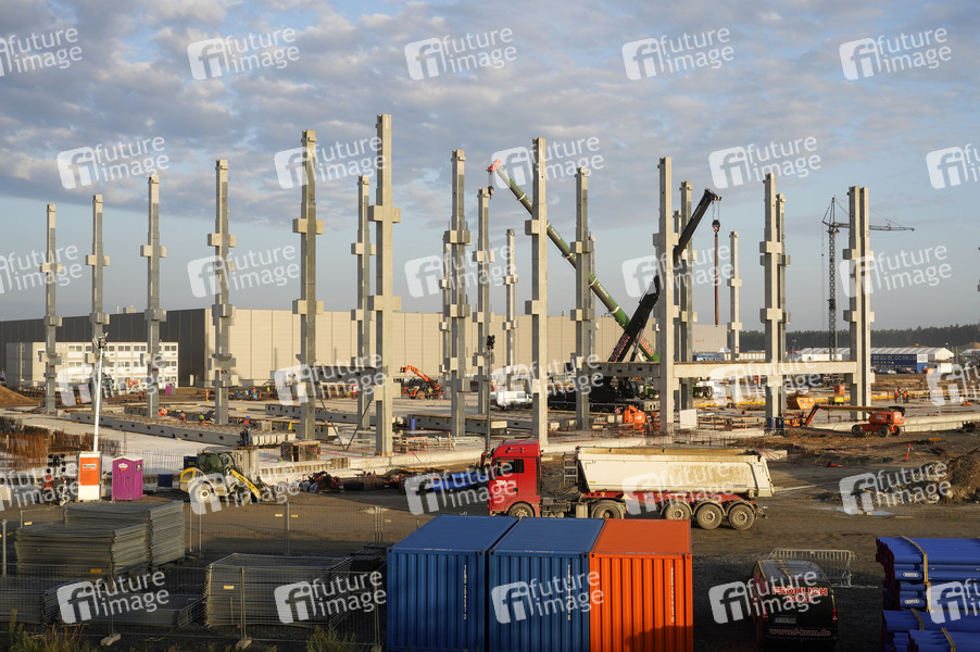Elektroauto, Elektrofahrzeuge, PKW, Auto, Model Y, Model 3, Großfabrik, Automobilhersteller, Autobauer, Elektromobilität, umweltfreundlich, vorläufige Genehmigung, Batteriefabrik, Großprojekt, Investition, Baugenehmigung, Vorab-Genehmigung, E-Auto-Fabrik, Umwelt, Klimaschutz, Baustelle, Bauen, Baubranche, Bau-Branche, Bauarbeiten, Großbaustelle, Bagger, Kran, Kräne, Baustelle, Batterie-Fabrik