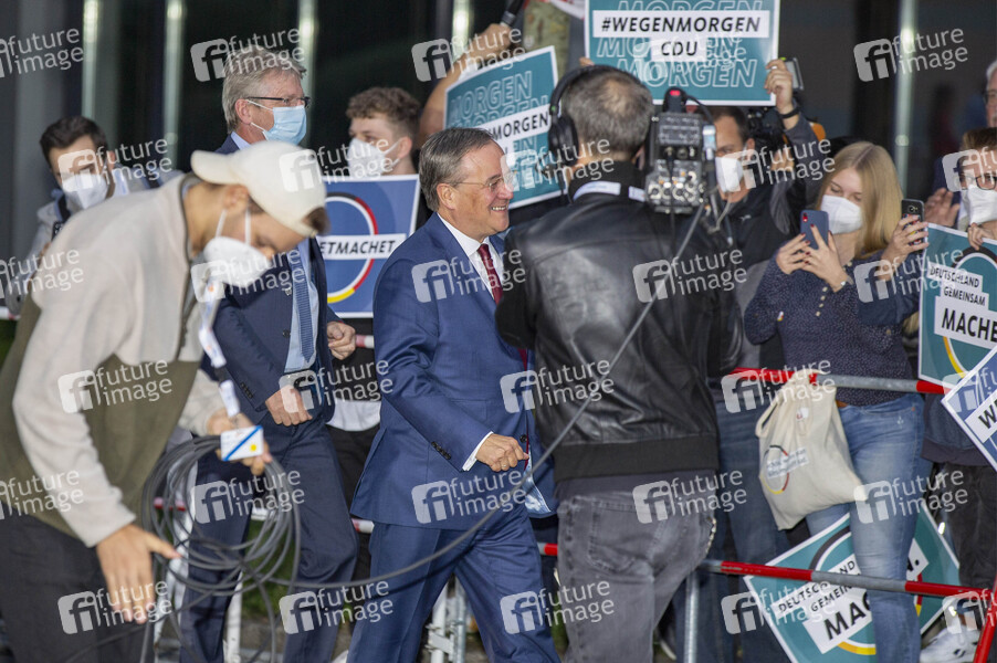 Armin Laschet beim 'Triell - Dreikampf ums Kanzleramt' von ARD und ZDF mit den Kanzlerkandidaten im Studio Berlin-Adlershof. Berlin, 12.09.2021