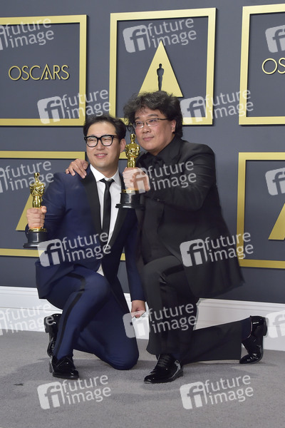 Han Jin-won und Bong Joon-ho (beste Autoren des Originaldrehbuchs für 'Parasite') im Press Room der Oscar Verleihung 2020 / 92nd Annual Academy Awards im Hollywood & Highland Center. Los Angeles, 09.02.2020