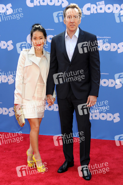 Nicolas Cage mit Ehefrau Alice Kim bei der Filmpremiere von 'The Croods / Die Croods' im AMC Loews Lincoln Square Theater. New York, 10.03.2013