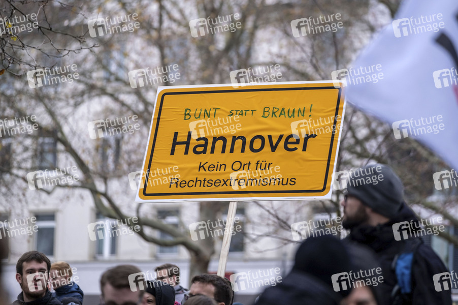 Über 7000 Menschen demonstrieren unter dem Motto 'bunt statt braun' im Hannover für Pressefreiheit und gegen einen pressefeindlichen NPD-Aufmarsch, an dem 120 Rechte teilnehmen. Hannover, 23.11.2019