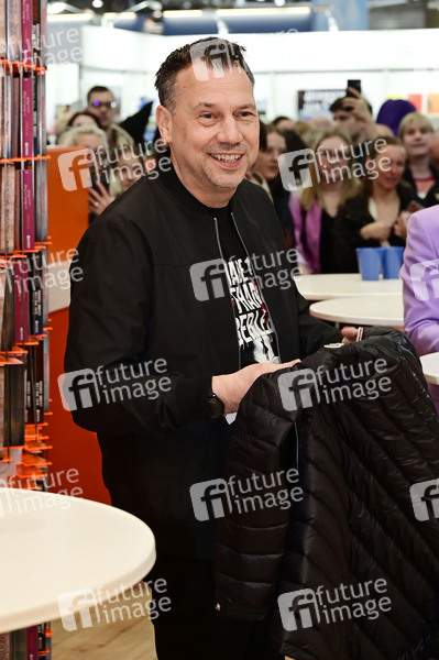 Sebastian Fitzek bei einer Signierstunde am Messestand Droemer Knaur in Halle 2 auf der Leipziger Buchmesse 2025 auf dem Messegelände. Leipzig, 29.03.2025