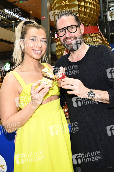 Jana Schwarz und Kai Schwarz beim Auftakt der Charity Aktion 'Goldhasen für eine gute Sache' zugunsten der Budianer Hilfe Kinder und Jugendhilfsorganisation in der Europa Passage. Hamburg, 31.03.2022