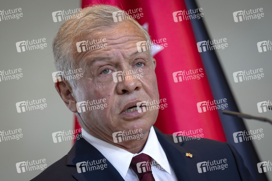 Abdullah II. bin al-Hussein beim Empfang des Königs von Jordanien zu einem gemeinsamen Gespräch mit dem Bundeskanzler und anschließendem Pressestatement im Bundeskanzleramt. Berlin, 03.04.2025