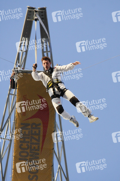 Base Flying von Jochen Schweizer mit den Hauptdarstellern von 'Gangs' auf dem Park Inn Hotel am Alexanderplatz in Berlin