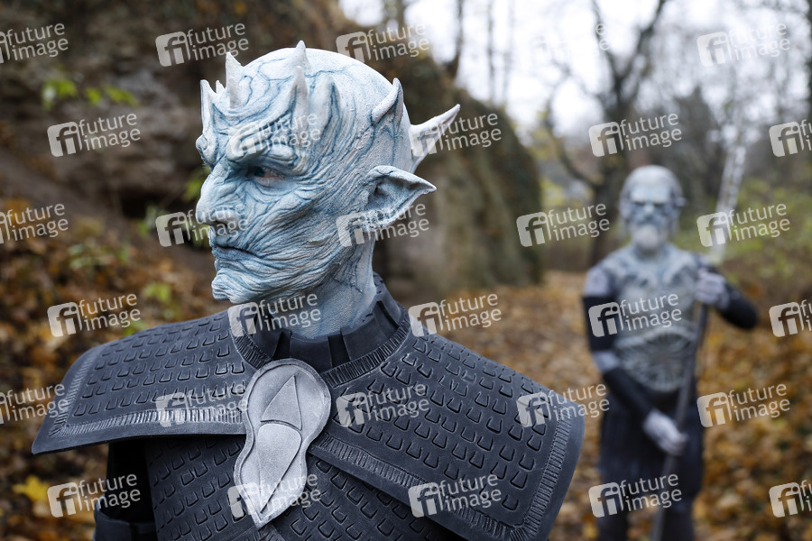 GEEK ART - Bodypainting meets SciFi, Fantasy and more: 'Game of Thrones' Photoshooting mit Paul als Nachtkönig und Torben als Weißer Wanderer in der Ruine der Burg Calenberg. Schulenburg, 30.11.2018 - Ein Projekt des Fotografen Tschiponnique Skupin und des Bodypainters und Transformakers Enrico Lein