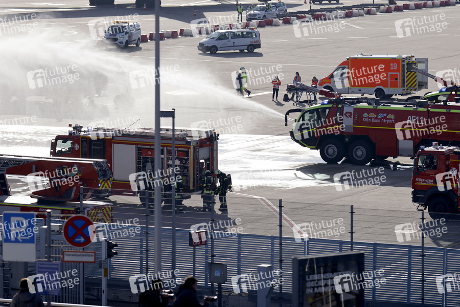 Notfall, Notruf, Flugzeug, Flugzeugbrand, Rauch, Rauchentwicklung, Flughafen, Großübung, THW, Feuerwehr, Bundespolizei, Rettung, Sanitäter, Verletzte, Statisten, Einsatzkräfte, Bundespolizei, Landespolizei, Bundeswehr, Simulation, Behandlungsplatz, Bevölkerungsschutz, Einsatzbereitschaft, Einsatzeinheit, Ernstfall, Fläche Alpha, Großschaden, Großschäden, Ersthelfer, Großschadensereignisse, ICAO, Krisenszenarien, Krisenszenario, Krise, Katastrophen, Katastrophe, Katastrophenfall, Ernstfall, Feuer, Rauch, Löschen, Kerosin, Brand, Löschfahrzeuge, Verletzte, Sammelstelle, Bergung, Unfall, Probe, Training, Schutzausrüstung, Katastrophenresistentz, Katastrophenschutz, Katastrophenvorsorge, Kollision, Leistungskontrolle, Risikobewusstsein, Szenario, Übung, Übungsplatz, Unfallverhütung, Verkehrsflughafen, Zivilluftfahrtorganisation, Zusammenarbeit, Köln Bonn Airport, Flughafen Konrad Adenauer, Internationale Zivilluftfahrtorganisation, Sonderorganisation der Vereinten Nationen