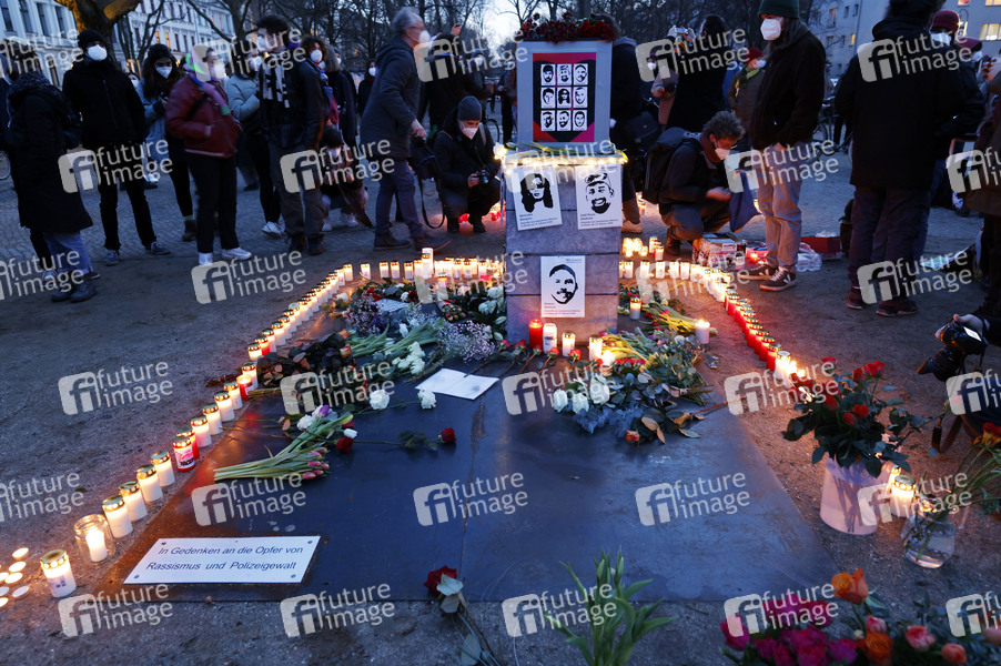 Gedenkveranstaltung zum ersten Jahrestag des rassistischen Anschlags in Hanau am Oranienplatz. Vor einem Jahr tötete ein Rechtsextremist in Hanau zehn Menschen und sich selbst. Berlin, 19.02.2021