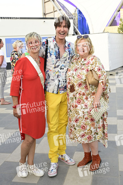 Tatjana Meissner, Rainer Genss und Franziska Troegner bei der Premiere des Theaterstücks 'Maxe Baumann - Ferien ohne Ende' während der Beelitzer Festspiele 2025 auf der Freilichtbühne. Beelitz, 14.08.2025