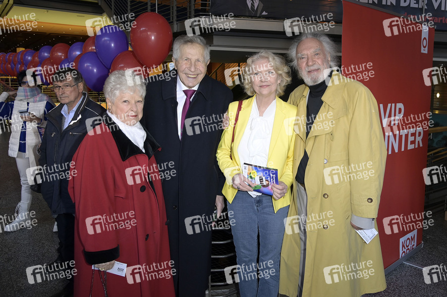 Otfried Laur mit Ehefrau Leni Laur und Achim Wolff mit Ehefrau Rita Feldmeier bei der Premiere des Theaterstücks 'Cluedo - Das Mörderspiel' in der Komödie am Kurfürstendamm im Theater am Potsdamer Platz. Berlin, 17.03.2024