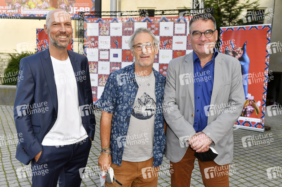 Andreas Stein, Dani Levy und Bernd Buder bei der Eröffnung des 27. Jüdischen Filmfestivals Berlin & Brandenburg im Hans Otto Theater. Potsdam, 12.08.2021