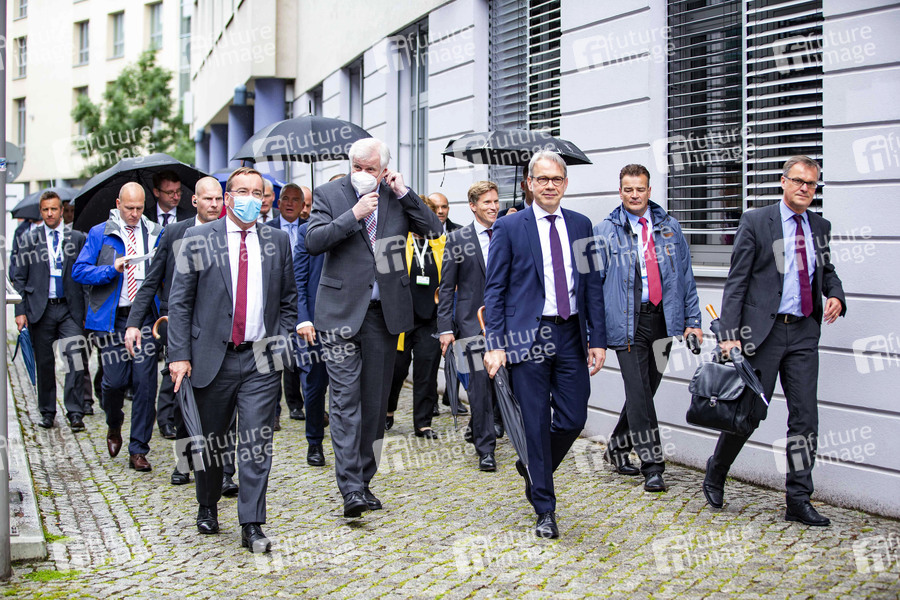 Boris Pistorius, Horst Seehofer und Georg Maier beim Pressetermin im Rahmen der Innenministerkonferenz Thüringen 2020 auf dem Domplaz. Erfurt, 18.06.2020