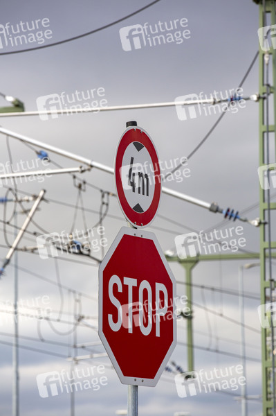 Stopschild und Höhenbegrenzung - Eisenbahnsicherheit. Köln, 16.04.2020