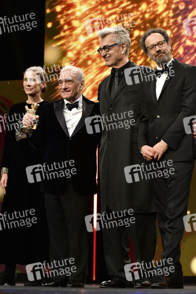 Mariette Rissenbeek, Martin Scorsese, Wim Wenders und Carlo Chatrian bei der Verleihung des Goldenen Ehrenbären an Martin Scorsese auf der Berlinale 2024 / 74. Internationale Filmfestspiele Berlin im Berlinale Palast. Berlin, 20.02.2024