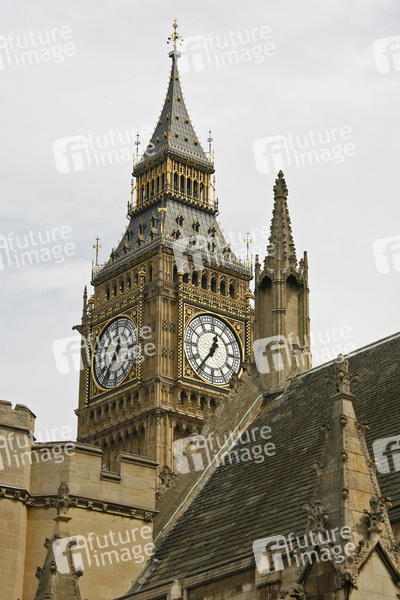 Big Ben bezeichnet die mit 13.5 t Gewicht schwerste der fünf Glocken des berühmten Uhrturms am Palace of Westminster, heute bezeichnet man gemeinhin den ganzen Turm als Big Ben, erbaut 1858 von Sir Benjamin Hall, Höhe 96.3 Meter, Durchmesser der vier Zifferblätter beträgt acht Meter, die Minutenzeiger haben eine Länge von 4.3 Metern, die Stundenzeiger messen 2.7 Meter, die größte Uhr Großbritanniens, der Uhrturm ist eines der bekanntesten Wahrzeichen der Stadt London