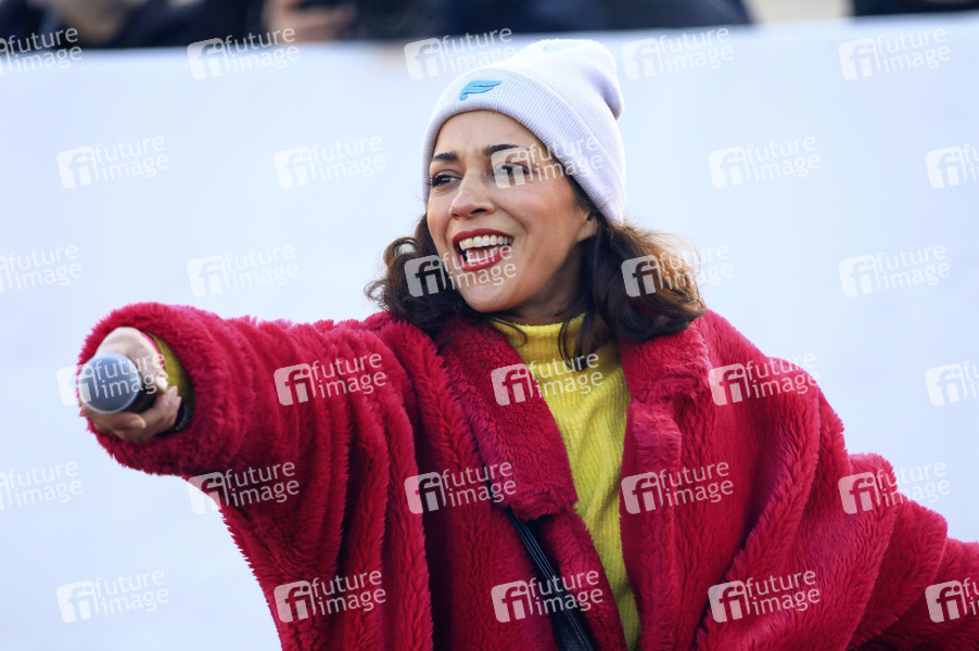 Politik, Demonstration, Hass, Hetze, Extremismus, Kundgebung, Brandmauer, Demo, Aktion, Banner, Demonstrant, Demonstranten, Demonstrierende, demonstrieren, Protestaktion, Protestdemo, Protestdemonstration, Kundgebung, gegen Rechts, Rechtsextremismus, gegen AfD, Sängerin, No Angels