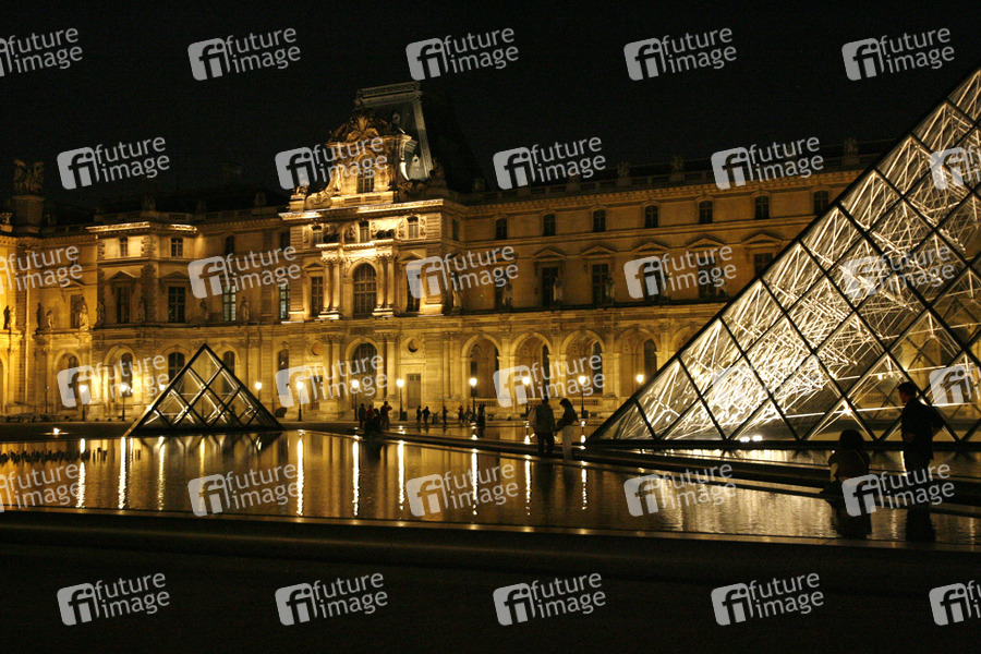 Sightseeing Paris. Im Innenhof des Louvre bei Nacht
