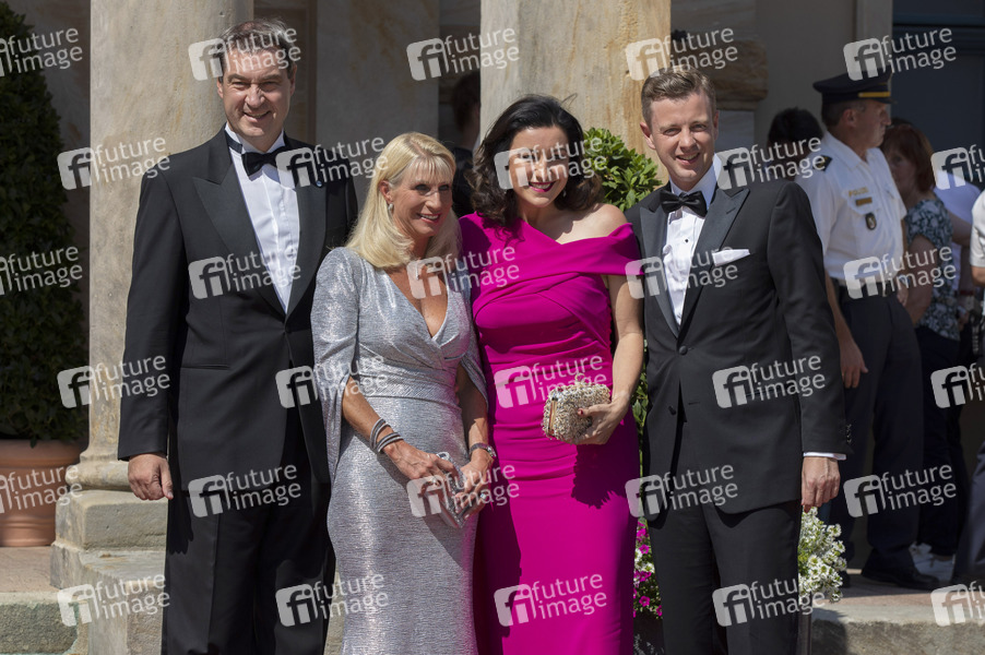 Markus Söder, Karin Baumüller, Dorothee Bär und Oliver Bär bei der Eröffnung der Richard-Wagner-Festspiele 2019 mit der Premiere der Oper 'Tannhäuser' im Bayreuther Festspielhaus. Bayreuth, 25.07.2019