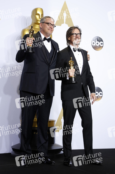 Adam McKay und Charles Randolph (Bestes adaptiertes Drehbuch 'The Big Short') im Presseraum der Oscar Verleihung 2016 / 88th Academy Awards im Loews Hollywood Hotel. Los Angeles, 28.02.2016