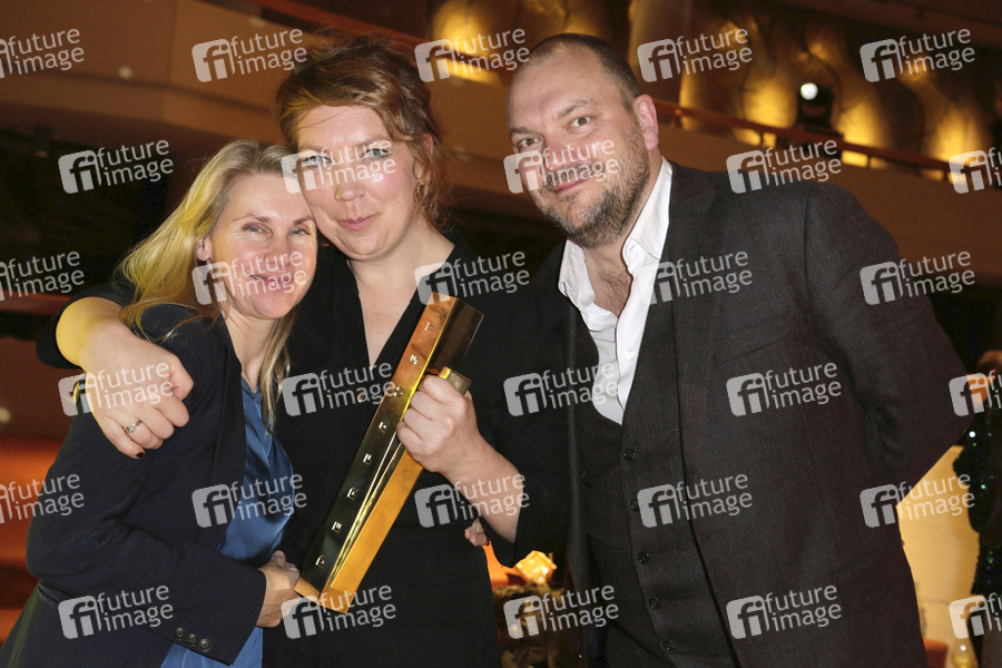 Tanja Schleiff, Lina Beckmann und Charly Hübner bei der Verleihung des Deutschen Theaterpreises 'Der Faust' 2022 im Düsseldorfer Schauspielhaus. Düsseldorf, 26.11.2022