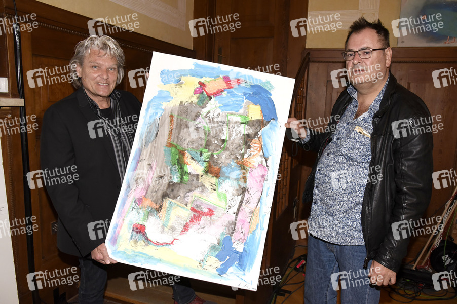 Ernst Hannawald mit Arno Linke vor seiner Lesung aus dem Buch 'Das Leben ist kein Film' in der SeelenArt Kunst Kultur Galerie im Kleinen Theater. Haar, 30.09.2021