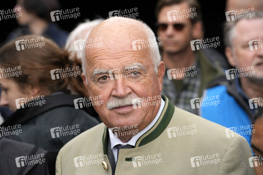 Peter Gauweiler bei der Friedensdemonstration unter dem Motto 'Nein zu Krieg und Hochrüstung! Ja zu Frieden und internationaler Solidarität' vor der Siedessäule am Großen Stern. Berlin, 03.10.2024