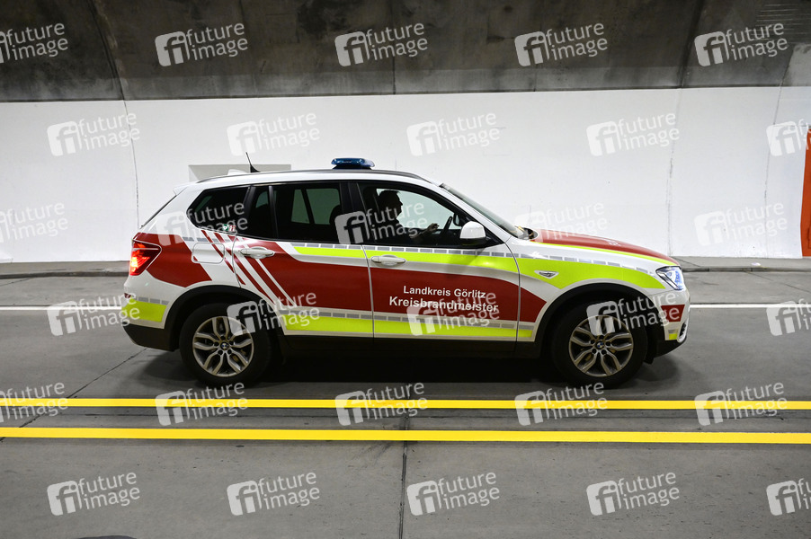 Straßentunnel in Sachsen, Verkehrsbauwerk im Landkreis Görlitz, Bundesautobahn 4, Erbaut in den 1990er Jahren, Königshain, T unnel in Europa, B4, BAB4, Bundesautobahn 4, Anschlussstelle Nieder Seifersdorf, Kodersdorf, Landschaftsschutzgebiet Königshainer Berge, Verkehrsprojekt Deutsche Einheit Nr. 15, Röhre, Kreisbrandmeister Fahrzeug