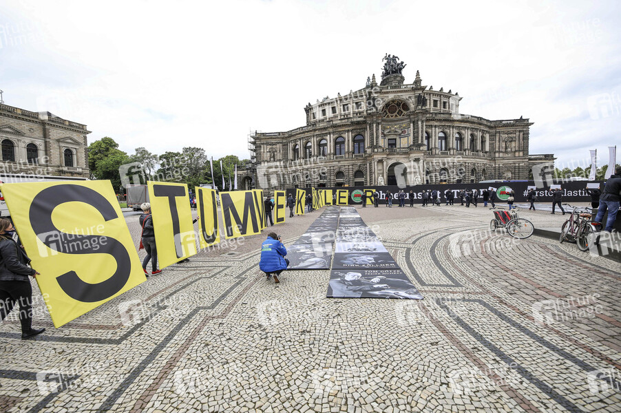 Demonstration 'Ohne uns ist Stille' der Organisation 'Leere Stühle' auf dem Theaterplatz in der historischen Dresdner Altstadt. Künstler, Veranstalter und Unternehmen der Veranstaltungsbranche wie Caterer und Techniker demonstrieren gemeinsem, um auf die Probleme und Wichtigkeit ihrer Branche aufmerksam zu machen. Dredsen, 05.06.2020