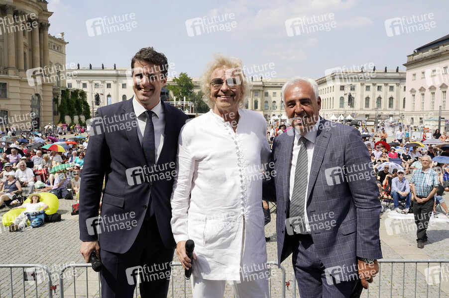 Matthias Schulz, Thomas Gottschalk und Hans-Reiner Schröder beim 'Staatsoper für alle 2019' Event mit der Live-Übertragung von Richard Wagners 'Tristan und Isolde' aus der Staatsoper auf dem Bebelplatz. Berlin, 15.06.2019