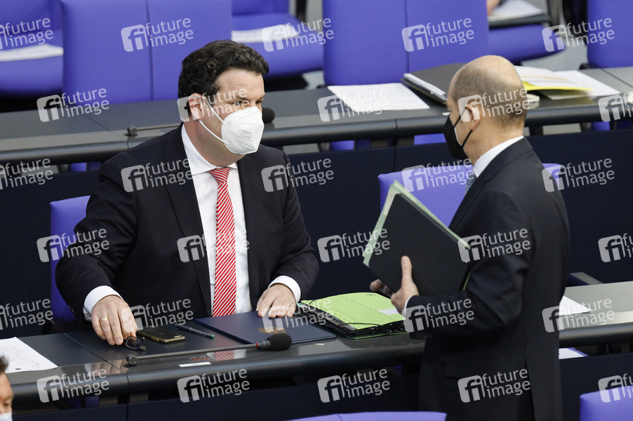 Hubertus Heil in der 210. Sitzung des Deutschen Bundestages im Reichstagsgebäude. Berlin, 12.02.2021