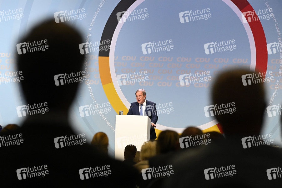 Armin Laschet beim 36. Parteitag der CDU Brandenburg in der MBS Arena. Potsdam, 04.09.2021